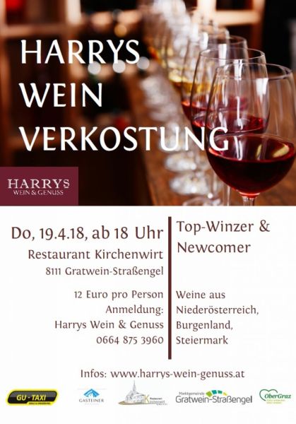Am Donnerstag den 19. April findet ab 18 Uhr im Restaurant Kirchenwirt in Gratwein die diesjährige Frühlingsverkostung von Harry Suppan unter dem Motto "Top-Winzer & Newcomer" statt.